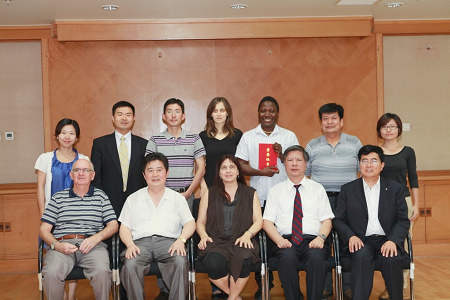 中国教育国际交流协会副秘书长林佐平博士(前排右二),澳大利亚中国文化教育交流中心总裁蒋凡先生(前排左二),澳大利亚哥伦比亚学院副院长米歇尔女士(前排中)与合作学校外籍领导教师合影(2011)