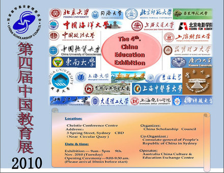 为大力宣传和介绍中国的高等教育发展情况,扩大中国高等教育的影响,吸引优秀外国青年学生去华学习,国家留学基金委员会组织了北京大学、复旦大学、上海交通大学、北京师范大学、北京航空航天大学等国内23所知名高校于2007年11月7日在澳大利亚悉尼举办了“第三届中国教育展—2007”涵盖了综合性、理工性、师范类、医学类等各类高校。
